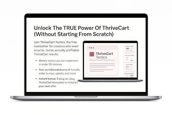 Join ThriveCart Tactics, the free newsletter for creators who want smarter, faster, actually profitable ThriveCart results. Each week you’ll get practical insights and plug-and-play strategies you can apply in minutes. Not months.